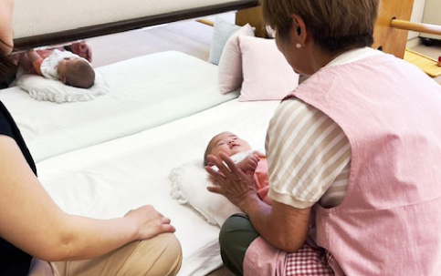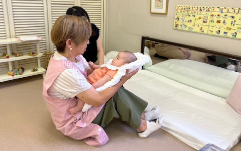 ベビークラスは月1回、親子で1時間半の活動を楽しむクラスです。10組ほどが2グループに分かれて参加し、