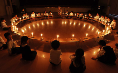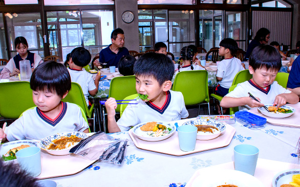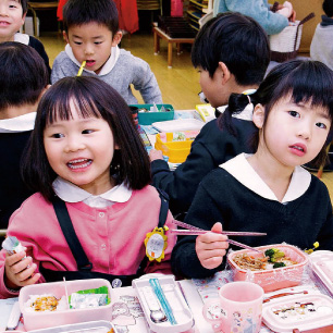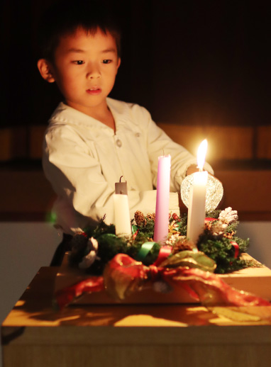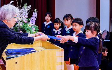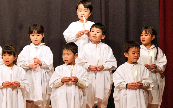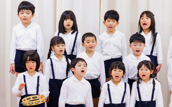 子どもが神様から一人ひとり異なる賜物を授かった、かけがえのない存在であることを思い、神様に感謝し、讃美することによって、生きていく上で大切なことを成しとって欲しいというキリスト教保育が基盤になっています。 復活祭、花の日、収穫感謝祭、クリスマス等、園全体で守る礼拝の度に、子どもたちは心を込めて聖句のカードをカード帳に貼り、家族と共にその恵みを喜び分かち合っています。