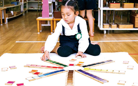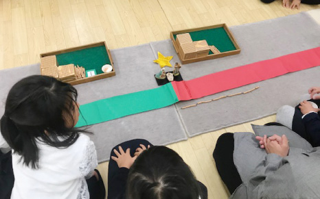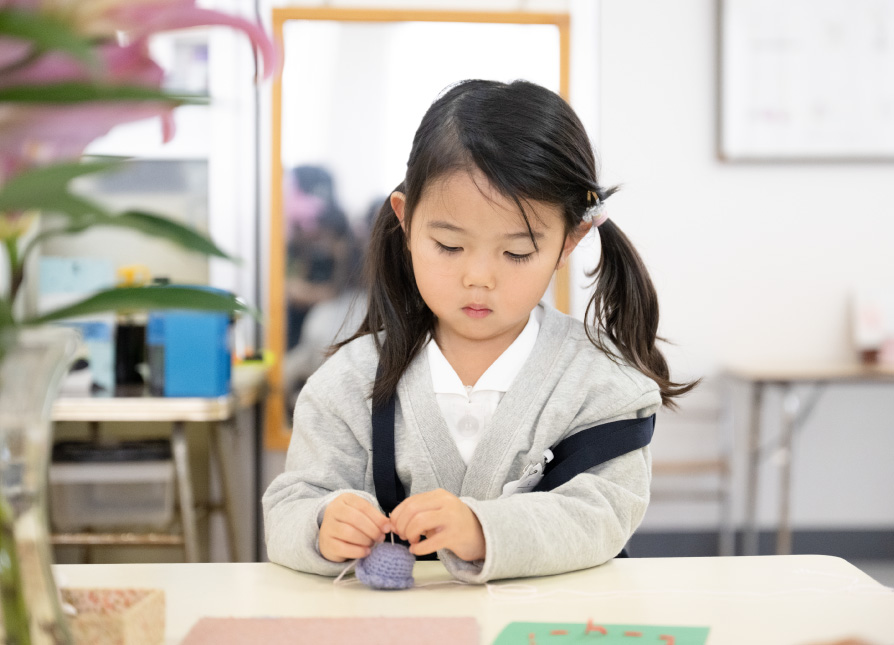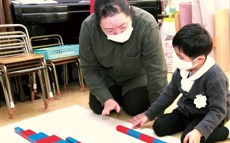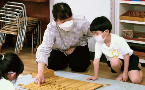 モンテッソーリ教育では、「お仕事」と呼ばれる教具を使った活動を通じて、