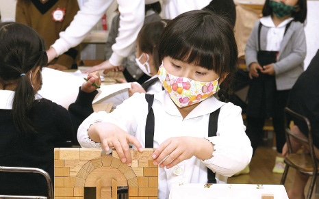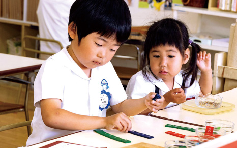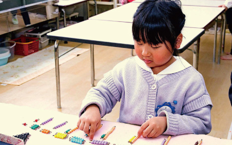 ⼦どもは物の性質に強い興味を持ち、乳幼児期に感覚が最も発達します。環境から吸収した印象を教具によって整理づけます。