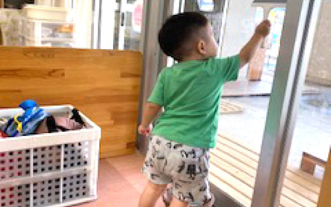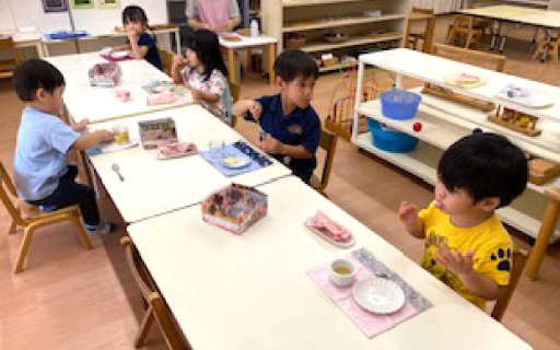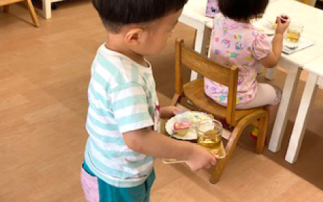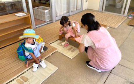 ⼦どもたちはお⺟さんから離れ、整えられた環境の中で、