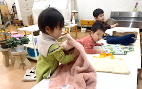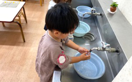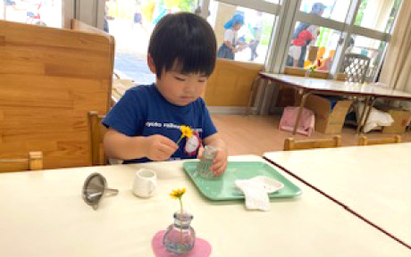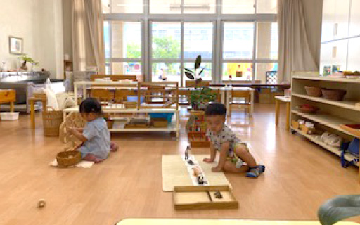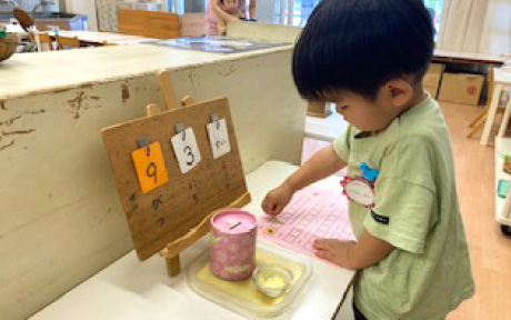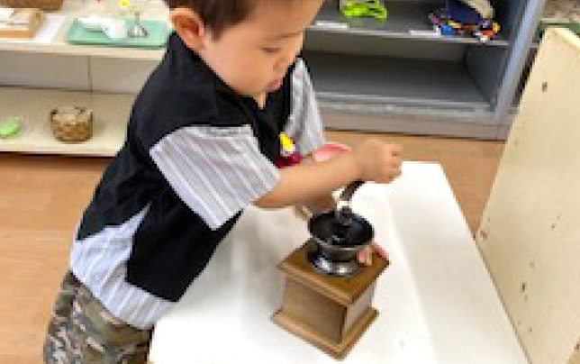 ⾃分で教具を選び⼿をいっぱい使い繰り返し満⾜するまで活動します。